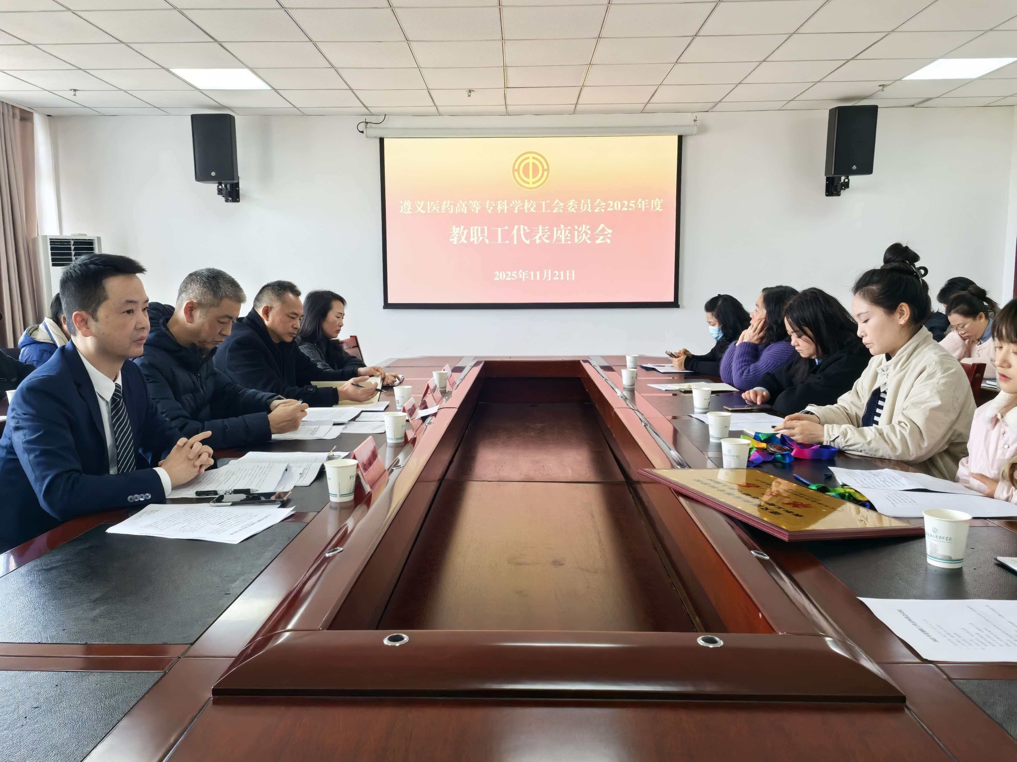 为复盘工会年度工作、畅通民主沟通渠道、凝聚发展合力,11月21日上午,遵义医药高等专科学校2025年度教职工代表座谈会在综合楼943会议室隆重召开。党委副书记、校长陆远富,党委副书记张武晓出席会议,各分工会主席、教职工代表及学校工会委员会其他委员参加会议,会议由校工会主席张承伟主持。